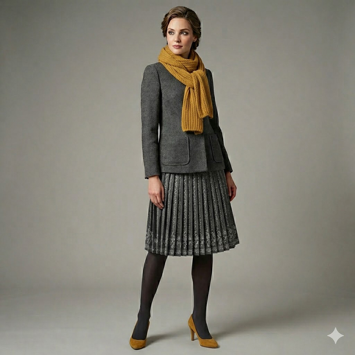 Tvíd plisé s výšivkou šedočerná/černá
