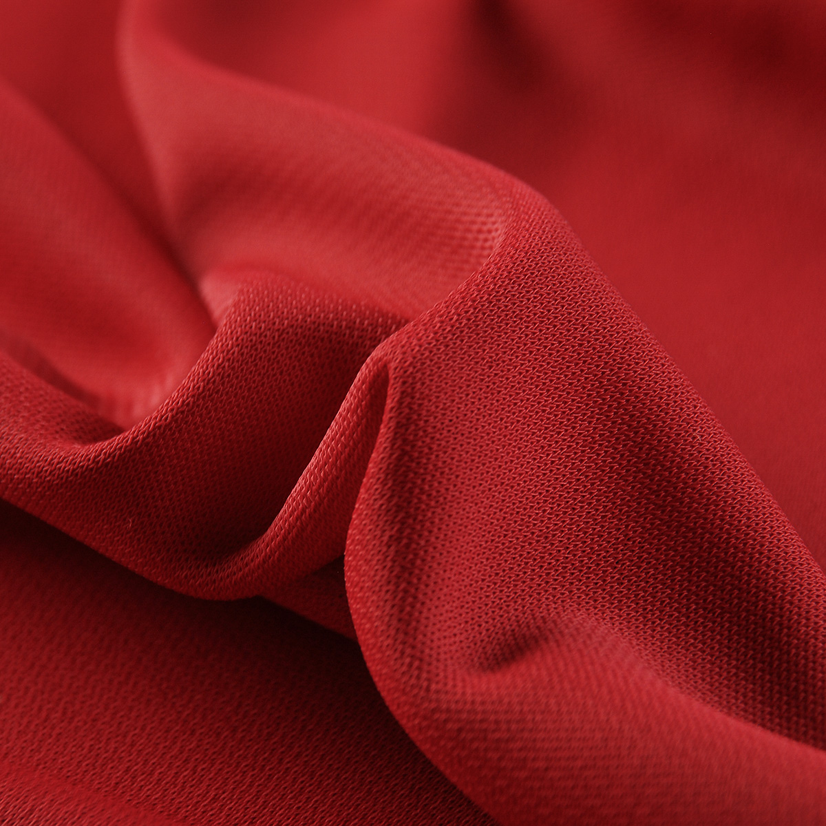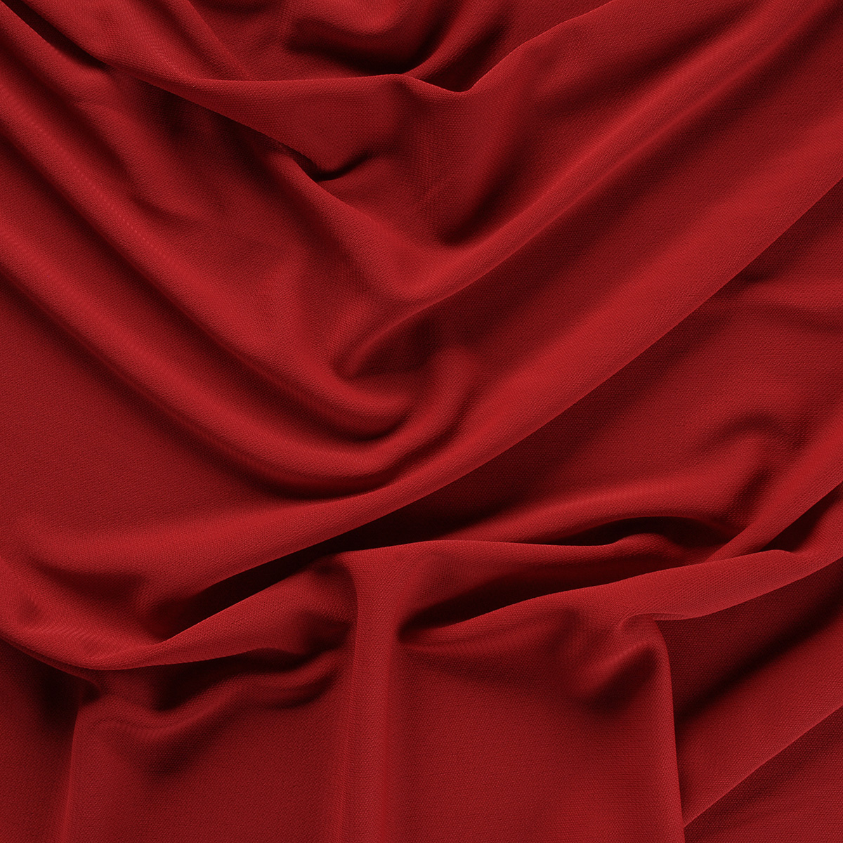 Úplet žoržet jemný- jemná pletenina úplet žoržet s charakteristicky zrnitým povrchem v barvě tmavší červené. Úplet žoržet jemný má matný povrch, je lehce průsvitná (u sukně je dobré použít podšívku, u trička/tuniky/haleny podšívka potřeba není) a je krásné splývavá.