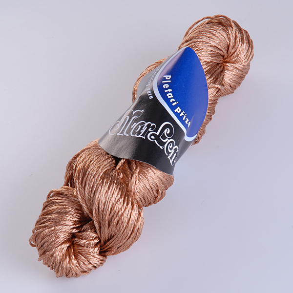 Viskozová pletací příze lesklá v barvě světle hnědé. Efektní příze na horké letní dny, přijemně chladí. Viskozová příze svým leskem působí velmi elegantně a můžete z ní vyrobit společenský oděv.