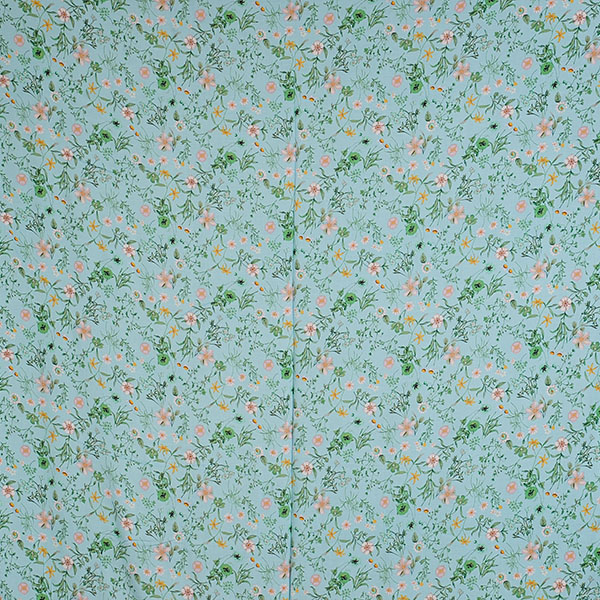 Viskozová šatovka květinový vzor světle modrá vzdušná látka na elagtní letní šaty s romantickým vzorem lučních květů v růžové, zelené a žluté barvě na světle modrém podkladu.Viskozová šatovka květinový vzor světle modrá je jemná, splývavá a pružná látka, není průsvitná, nepotřebjete tedy podšívku, má matný povrch a je velmi příjemná na omak.