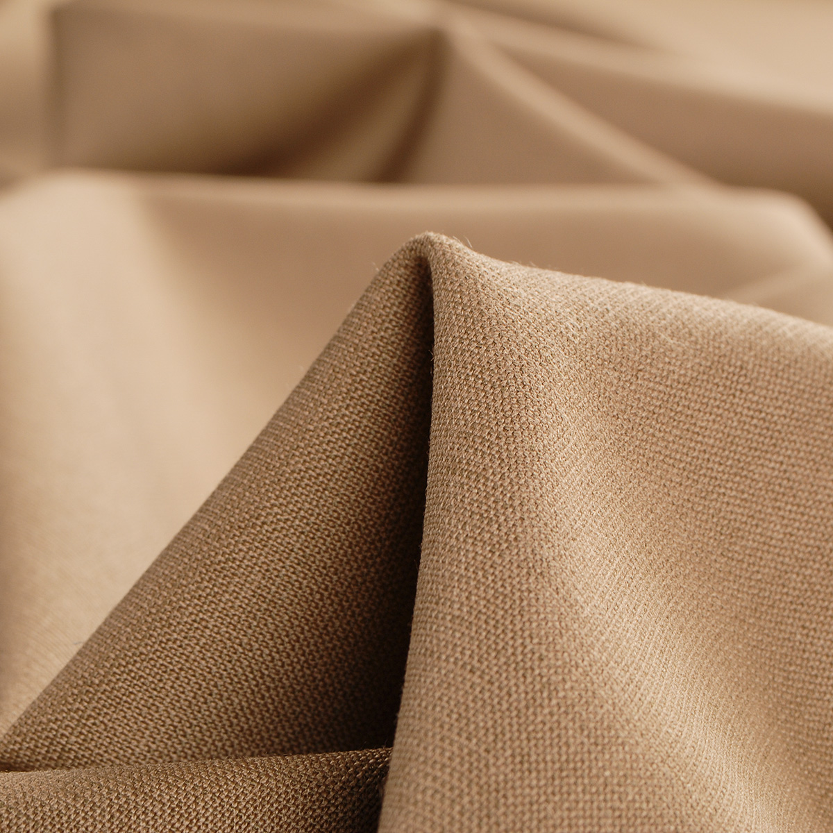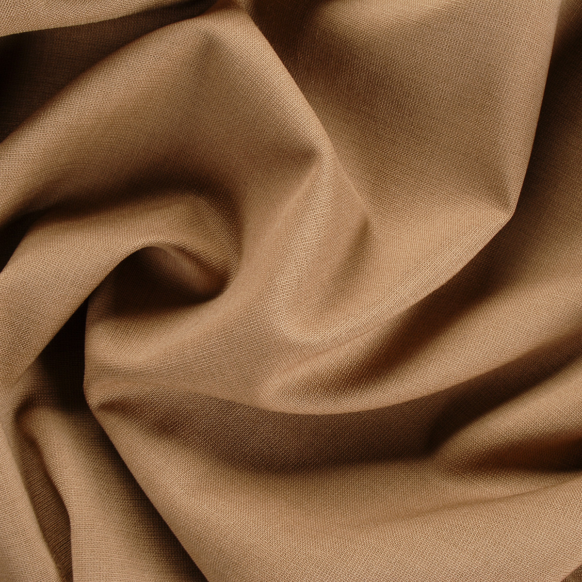 Kostýmová vlněná látka z panenské vlny s příměsí elastanu v barvě camel hnědé. Látka je spíše jemnější síly s hladkým povrchem vhodná na lehké sako, sukně i kalhoty, je poddajná a lehce splývavá.