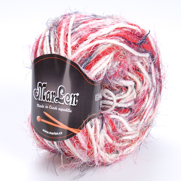 Vlněná pletací příze Marlen dlouhý vlas červeno-bílý melír