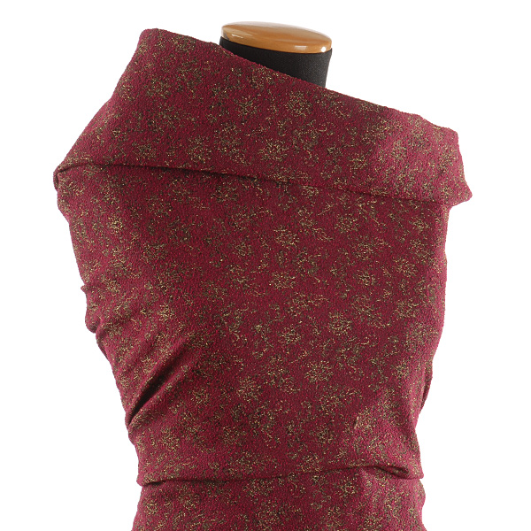 Replika historické látky- žakárová dekorační tkanina s ornamentálním vzorem s lurexovým vláknem ve zlaté barvě na fuchsiovém podkladě. Repliku historické látky můžete použít na historické šaty z období rokoka. Replika historické tkaniny byla vyrobená v naší vlastní tkalcovně na Vysočině.