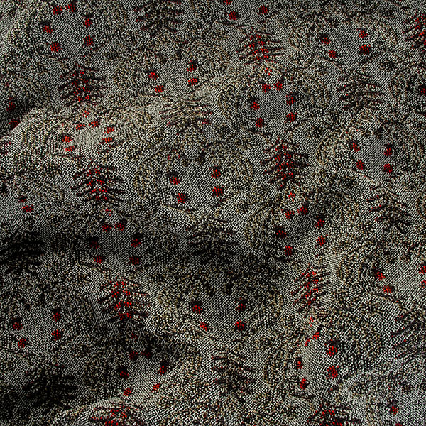 Žakárová oděvní látka secesní vzor jeřabiny olivová