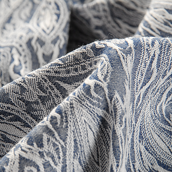 Žakárovou látku můžete kombinovat s jednobarevnými riflovinami.