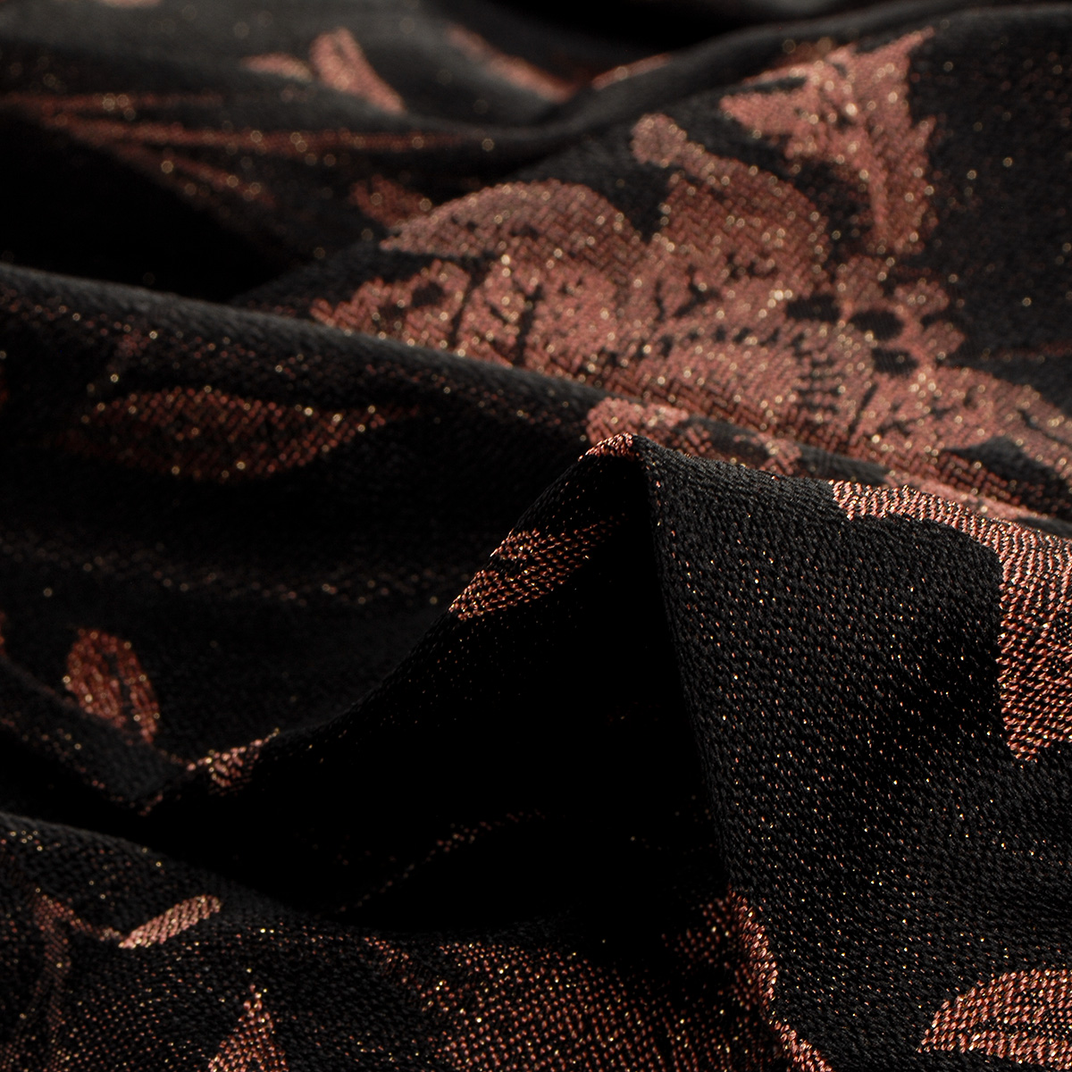 Žakárová tkanina Art Fabrics Primavera starorůžová - dekorativní žakárová tkanina s květinovým vzorem s lurexovým vláknem starorůžové barvy na černém podkladu. Žakárová tkanina Art Fabrics Primavera starorůžová je středně silná žakárová tkanina, není průsvitná a je poddajná. Žakárový vzor je oboustranný, pro větší efekt tedy můžete libovolně kombinovat obě barevné variace. Tkanina byla vyrobená v naší vlastní tkalcovně na Vysočině.