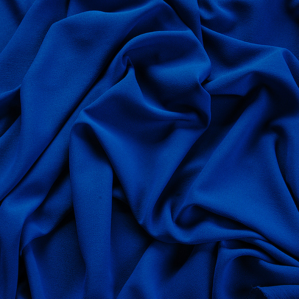 Žoržet pružný jednobarevný jemná látka s lehce zrnitým povrchem pružná v obou směrech ve středně modré safírové barvě. Žoržet pužný jednobarevný je vzdušný, splývavý a lehce průsvitný. Látka se díky obousměrné pružnosti téměř nemačká.